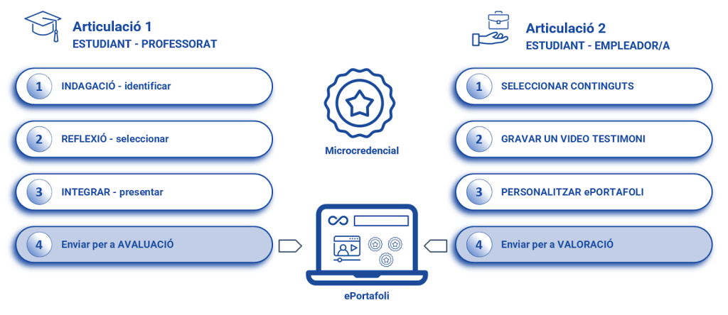 Rellegeix l’experiència des del valor conjunt del ePortfaoli i les microcredencials per a la projecció professional de l’estudiantat.