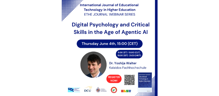 Inscriu-te! ETHE Journal Webinar Series “Digital Psychology and Critical Skills in the Age of Agentic AI” amb el Prof. Dr. Yoshija Walter, Dijous 4 de Juny a les 15:00h (CET)