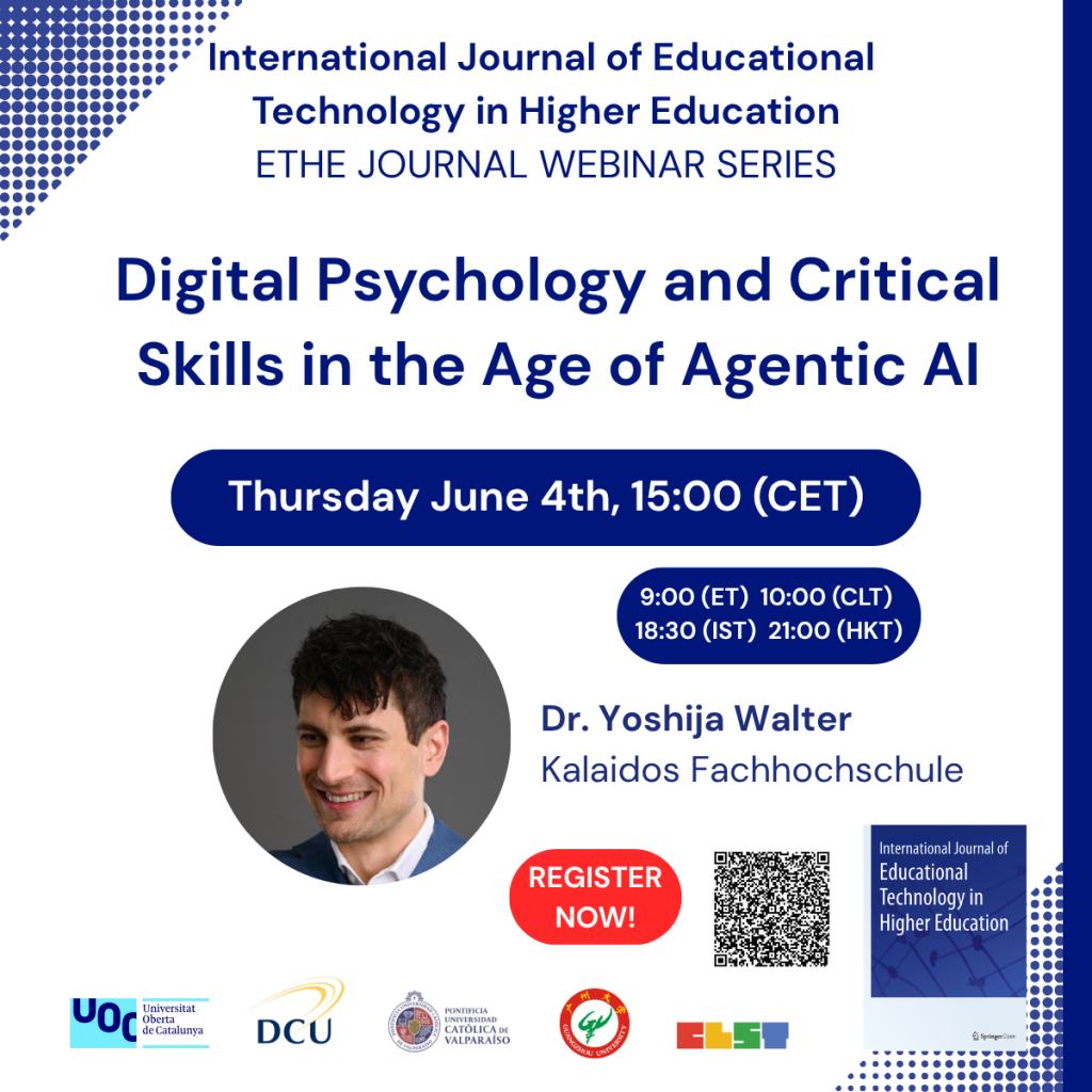 Register Now! ETHE Journal Webinar Series “Digital Psychology and Critical Skills in the Age of Agentic AI” with Prof. Dr. Yoshija Walter, Thursday June 4th at 15:00h (CET)